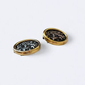 Mixed metal silver & gold tone, approx. 1” diameter.