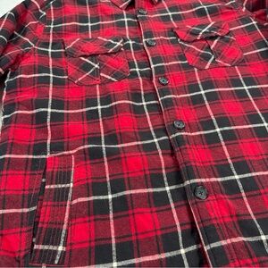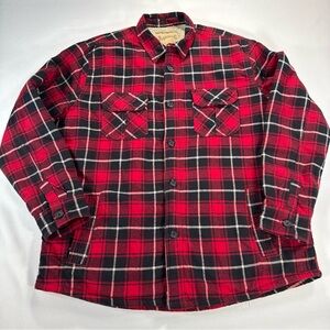 VTG Sears Roebuck & Co Shacket Mens XL Red Plaid Sherpa Lined Shirt Pockets