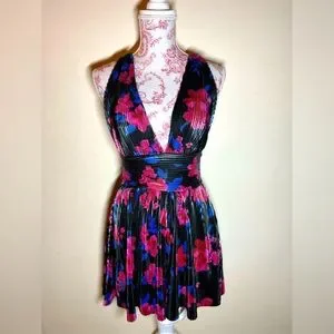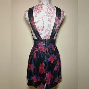 Bershka Metallic Black Festive Floral Print Zip Up Romper S