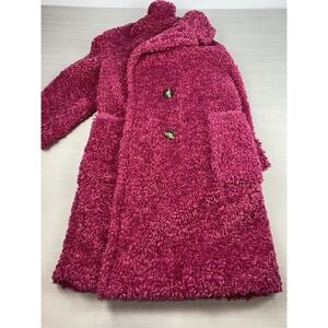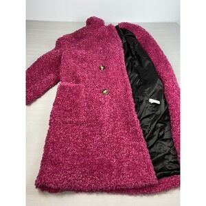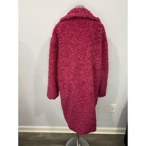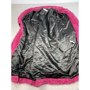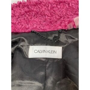 Calvin Klein Pink Faux Fur Coat Women Size Large Black Lined Jacket