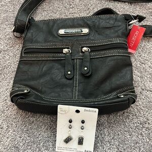 Rosetti Black “SAGE” Handbag/crossbody with Silver Accents NWT & earrings NWT