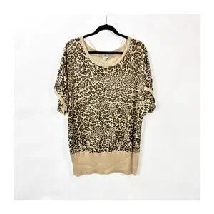 2/$30 Worthington Woman 1X Leopard Print Knit Top Women Plus Animal Pattern