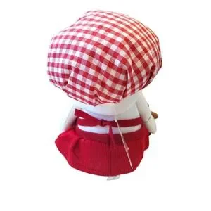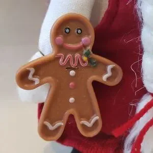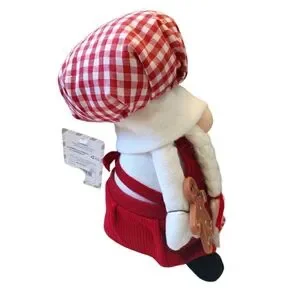 NWT winter holiday plush gnome. Features a whimsical gnome with plush filled baker's hat, weighted bean-bag "sand" bottom, holding a plastic gingerbread man and adorned with a felt holly on its hat. One dark thread on baker's hat as shown in photo. Closet kept in a pet and smoke free home.