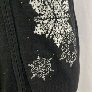 Christopher & Banks Black & White Beaded Snowflake Zip Front Knit Vest