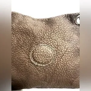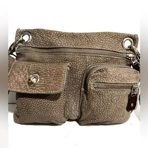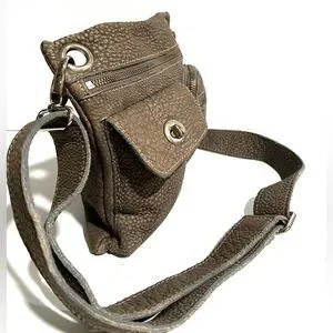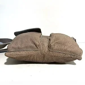 Roots Village Tribe Crossbody Gray Taupe Pebbled Leather Bag