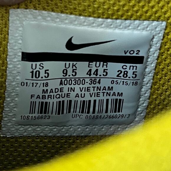 Green and blue athletic shoe. Good preowned condition. No stains or tears. Owner did have a dog, you may find a stray hair or two. Smoke free.
