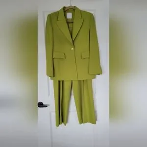 Chic lime green blazer with matching trousers. Ideal for a vibrant, professional style. Single button blazer, beltloops on trousers.