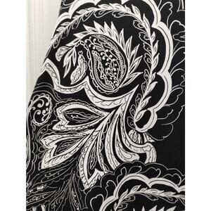 Chico's Size Large (2) Black White Paisley Leaf Sheer Asymmetric 3/4 Sleeves Top