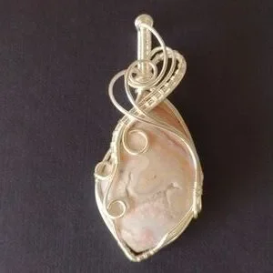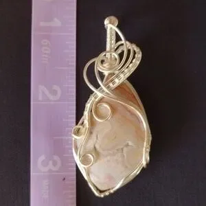 This exquisite pendant features a stunning cream stone elegantly wrapped in silver wire. Perfect for adding a touch of sophistication to any outfit.