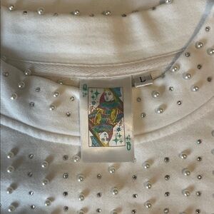 Stylish Queen of Sparkle white top with silver studs. Perfect for a chic look. Puff sleeves