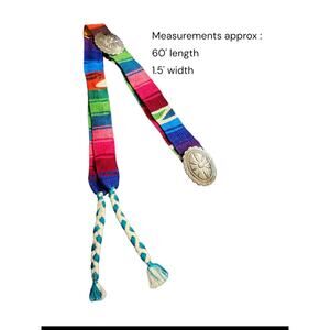 Vintage Silver Concho Belt Mexican Serape Woven Southwestern Boho Festival