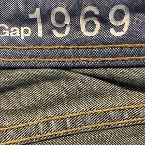 Classic blue denim jeans with contrast stitching. Features iconic GAP 1969 branding.