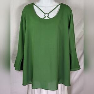 Plus Size, Fab Size, Curvy, Size 18W, Size 20W, 2X, Tunic, Flutter Sleeve, Scoop Neck, Crisscross Neckline, Embellished Neckline, Green Top, Jewel Tone, Flowy Fit, Draped Blouse, Loose Fit, Pullover, Hip Length, Business Casual, Office Wear, Work Top, Everyday Style, Dressy Casual, Versatile, Lightweight, Comfortable, Trendy, Bohemian, Boho Chic, Modern, Stylish, Evening Top, Party Blouse, Est 1946, onceuponahook