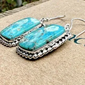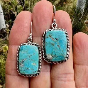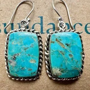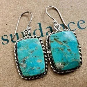 Sundance $228 NEW Kingman Turquoise Sterling Silver Handmade Rectangle Earrings