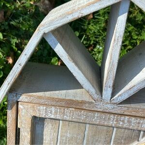 Weathered Wood Barn Shaped Wall Hutch | Small Primitive Style Hanging Cabinet with Distressed Finish | Unique Storage Decor