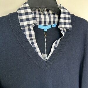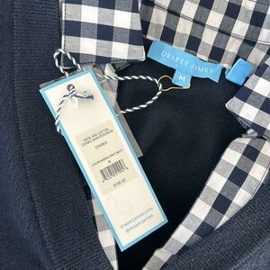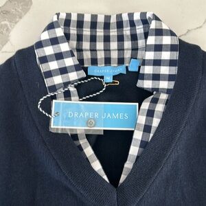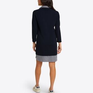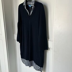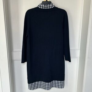 DRAPER JAMES Wool and Cotton Combo Sweaterdress in Navy Blue White Checkered