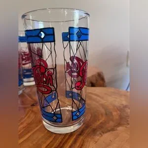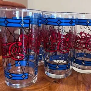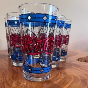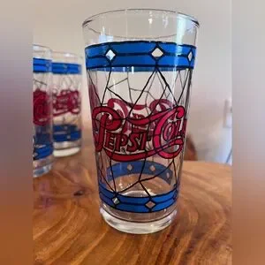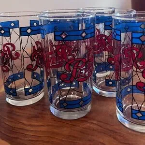 These glasses are now sought after by collectors of vintage advertising memorabilia and those nostalgic for the pop culture of the 1970s. The combination of the iconic Pepsi logo with the distinctive stained glass pattern makes them a visually appealing and historically significant piece of advertising history. The blue and red color scheme is also very eye-catching.