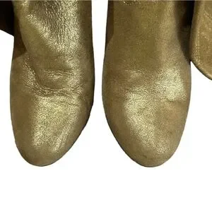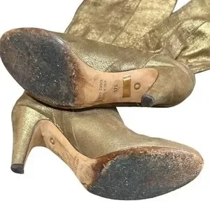 Step out in style with these shimmering gold heeled boots. Perfect for adding a touch of glamour to any outfit.