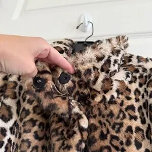 Leopard Print Faux Fur Funnel Neck Coat from LOFT. Size Medium. Excellent used condition. Super soft and glamorous for holiday parties!