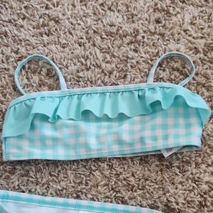Charming turquoise swimwear with checkered design. Features a playful ruffle detail. Never worn still in great condition!