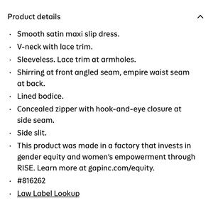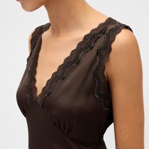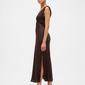 GAP Satin Lace Trim V-neck Maxi Slip Dress