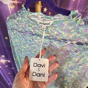 "Davi & Dani - Mock Neck Lace Long Sleeve Top - Lavender Multi - L (12-14) - NWT