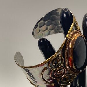 Handmade Onyx Mixed Metal Cuff Bracelet