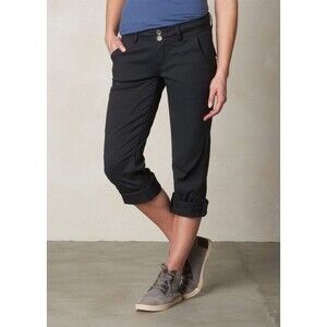 PRANA Black Halle Straight Leg Mid Rise Pants Roll Up Snap Outdoor Hiking Women's Size 10 Short Inseam