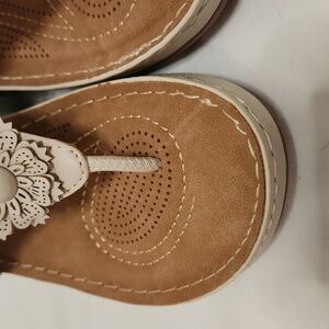 New!Light beige flower wedge flip flop arch support thong sandal off white ivory