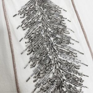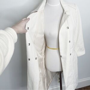 Anthropologie brand Burning Torch Silver Hand Beaded Embellished Ivory Cotton Light Trench Coat