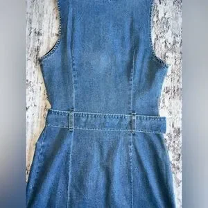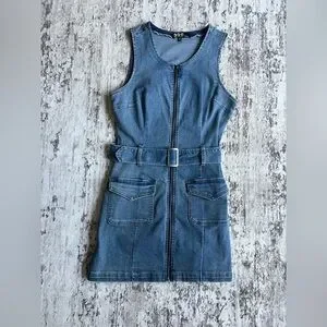 NWOT! Rewash Blue Denim Zip Front BodyCon TankTop Jean Dress with Belt Medium