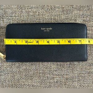 Chic navy blue wallet by Kate Spade. Features a gold zipper detail.