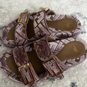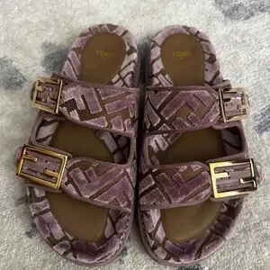 Fendi Mauve and Taupe Sandals with Gold Buckles