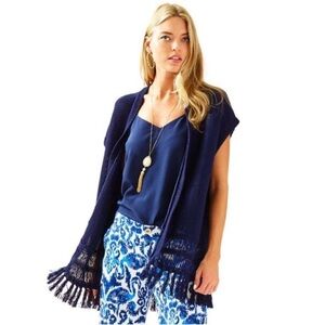 Lilly Pulitzer Bedford resort knit open front cardigan with tassel trim in navy