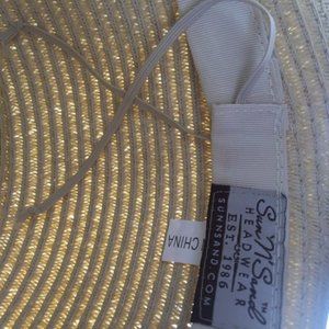 Beautiful wide brimmed hat. Perfect for traveling. Adjustable inside string so you can make it fit better to you & hide the string in the ribbon trim around the inside of the hat
