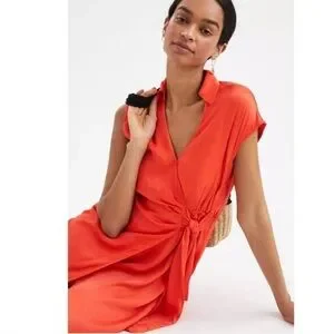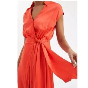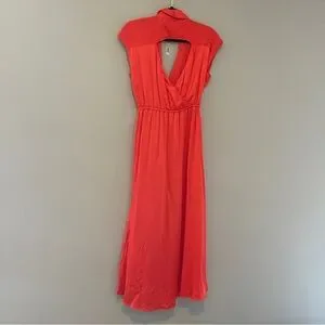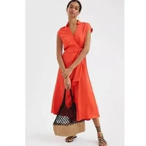 Anthropologie Maeve Orange Open-Back Wrap Midi Dress Size Small