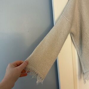 Wooden Ships Ecru Sweater Fringe Mohair Wool Pullover V Neck Beachy Size S / M