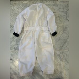 Kids' astronaut costume featuring NASA and Commander patches. White with black accents.