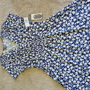 womens dress featuring a delightful floral pattern in blue and white. Perfect for any occasion. new with tag