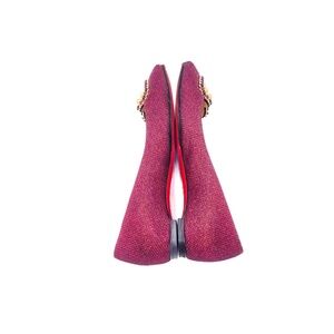 Christian Louboutin Burgundy Gold Heart Studded Pointed Toe Flats Shoes EU 36.5