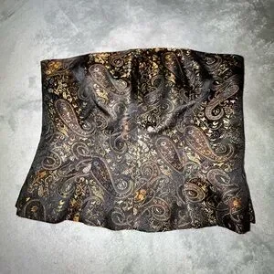 Vintage zip up corset-like tube top covered in a paisley design in black and gold. Size 8 so a larger medium and you need a chest to wear this top unless you have it tailored to you!❤️ it’s vintage but is still in wonderful condition just doesn’t fit me now.