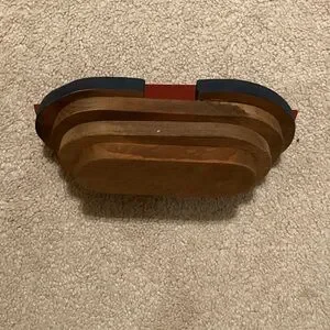 Excellent used condition. Ark is about 3” tall, 7” long, and 3” deep. Paint shows some deliberate distress as that was the style back in the 80’s! Noah is 1.25” tall and is only painted on one side. The gangplank is 3.25” long. 2 giraffes: 1.75” tall. 2 elephants a little less than 1 inch tall and 2 camels an inch tall. Details were drawn on the animals. Check out the photos for details. All of the original pieces are included.