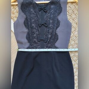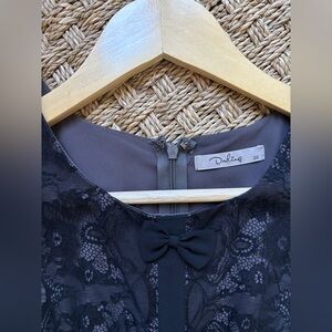 Chic mini dress with lace accents, by Darling. Features a stylish black and gray color scheme. Ideal for elegant outings.