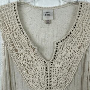 Knox Rose Women Sleeveless Distressed Tank Top Boho Western Beach Cream Size XXL