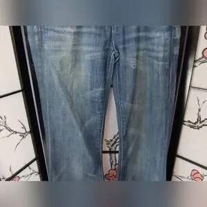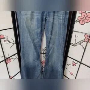 Classic boot cut jeans with a medium blue wash. Features a comfortable fit and stylish design. Ideal for everyday wear.