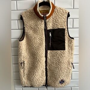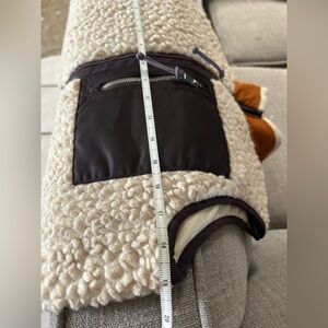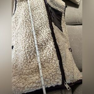 Cozy fleece vest with a stylish pocket. Perfect for layering in cooler weather. Excellent condition, like new, look carefully at the measurements in the photo because says M on the size label , but it's an S in my opinion