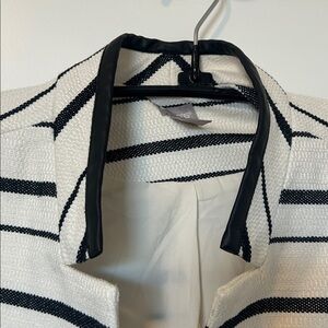 Elegant jacket with bold black and white stripes. Stylish and versatile.