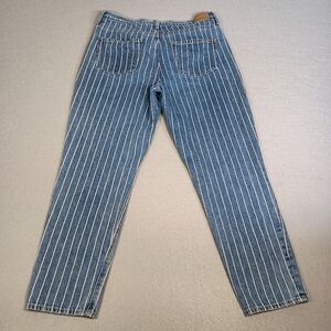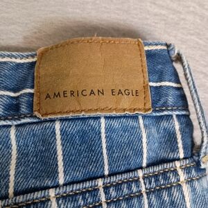 American Eagle Women's Size 10 Blue White Striped High-Rise 32x27 Mom Jeans