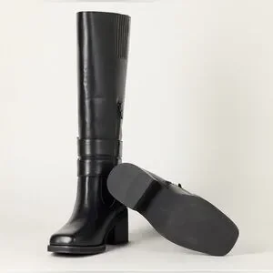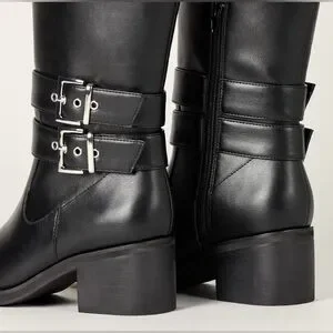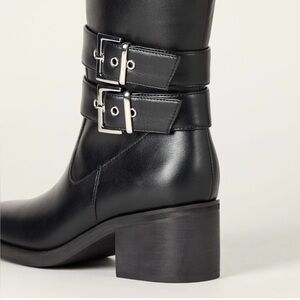 The Drop Women's Sage Tall Biker Boot with Buckles, Black, NWT