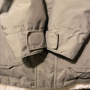 North Face McMurdo Parka. Authentic. Men’s size S. Good Used Condition. Ironing defect on right sleeve, has been stitched and fixed with iron-on patch, doesn’t affect parka’s function or comfort. Fur trim not included. It is windproof, breathable, and insulated with goose down. Color Grey Green.